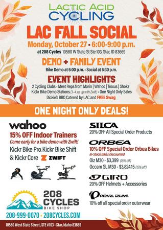 10/27/25, 6-9pm, 208 Cycles, 10580 W. State St., Star, ID
